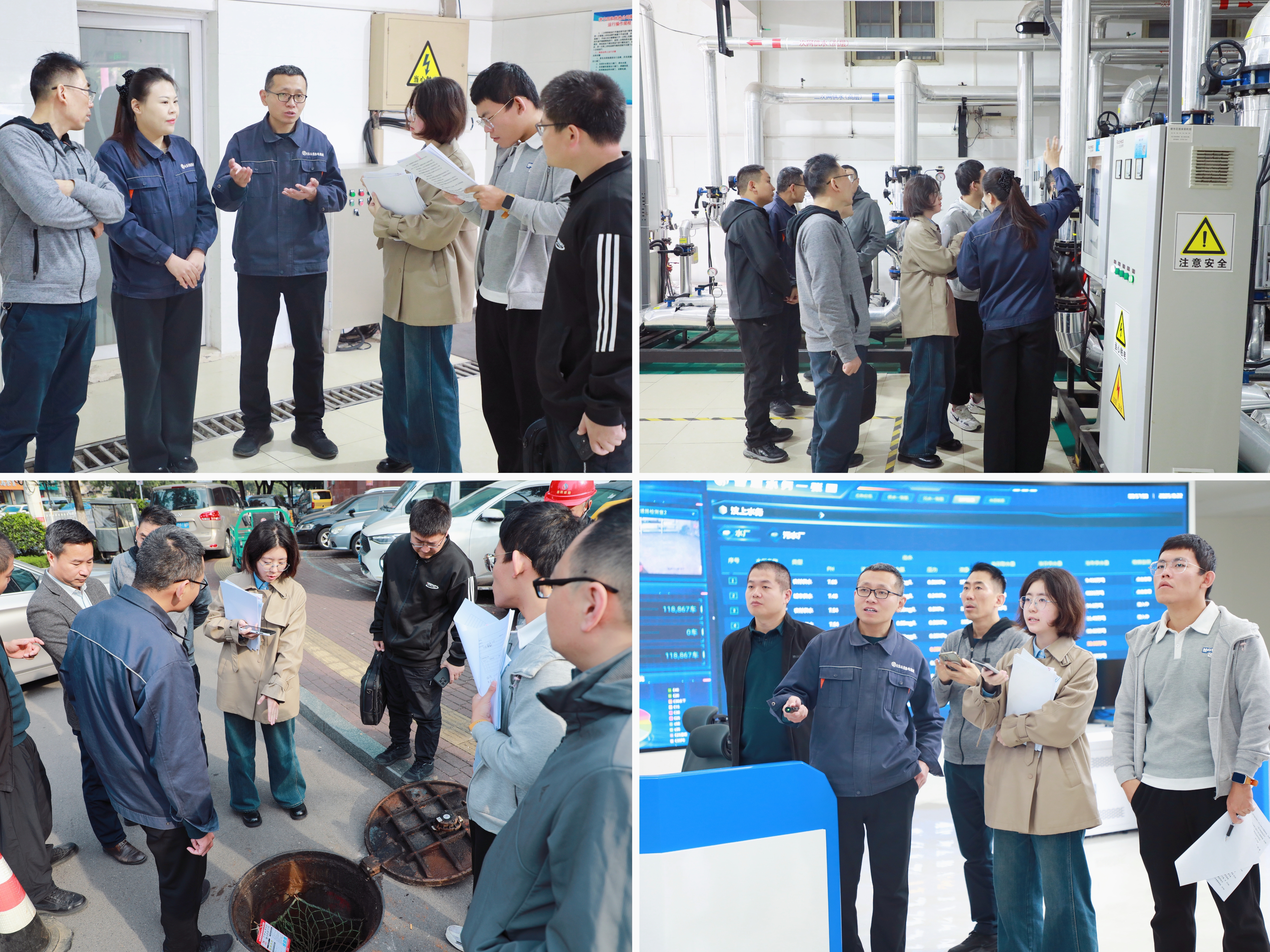 調(diào)研組一行首先深入四和供熱公司生產(chǎn)一線,認(rèn)真了解打壓期間的換熱設(shè)備運(yùn)行狀態(tài)、機(jī)組參數(shù)、安全防護(hù)措施以及小區(qū)周邊的管網(wǎng)鋪設(shè)細(xì)節(jié),針對老舊管網(wǎng)更新改造、安全風(fēng)險(xiǎn)隱患排查等關(guān)鍵基礎(chǔ)設(shè)施建設(shè)問題,調(diào)研組與相關(guān)負(fù)責(zé)人展開深入交流,逐一核對落實(shí)情況。隨后,調(diào)研組前往“數(shù)字公用”智慧城市運(yùn)營中心,重點(diǎn)考察“數(shù)智化”供熱管控平臺的建設(shè)與應(yīng)用成效。工作人員現(xiàn)場演示了系統(tǒng)的實(shí)時(shí)監(jiān)測、數(shù)據(jù)分析、智能預(yù)警和遠(yuǎn)程調(diào)度功能,通過大屏幕清晰展示了供熱管網(wǎng)的運(yùn)行狀態(tài)、各區(qū)域供暖溫度、管網(wǎng)壓力變化等數(shù)據(jù)。調(diào)研組對系統(tǒng)的智慧化水平給予高度評價(jià)并指出,智慧供熱的應(yīng)用為快速有序處置供熱問題提供了堅(jiān)實(shí)技術(shù)支撐,有效提升了供熱基礎(chǔ)設(shè)施的安全管控能力,為城市生命線安全工程建設(shè)提供了寶貴的實(shí)踐經(jīng)驗(yàn)。